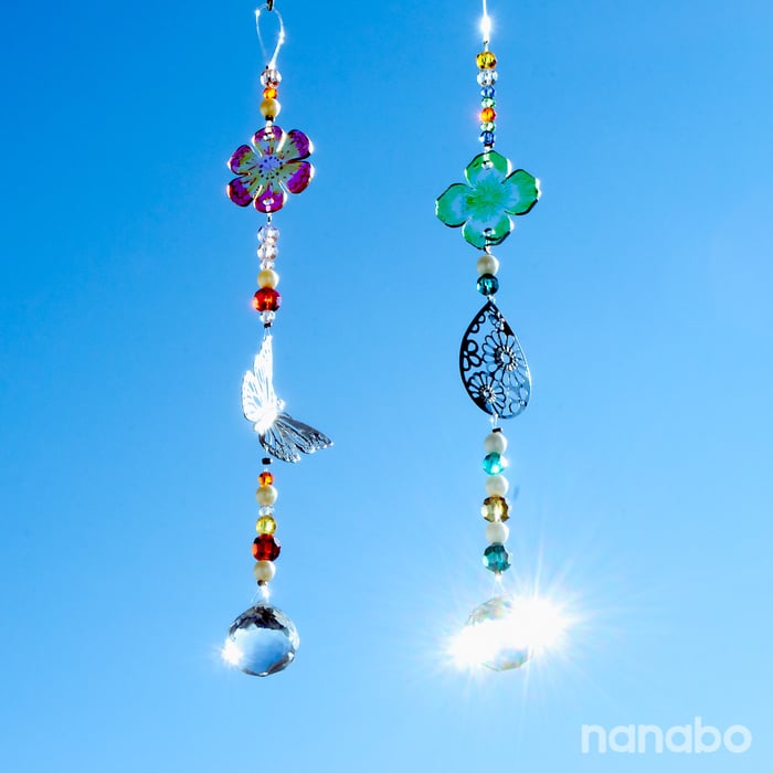 窓辺や車の中に吊し、太陽の光を受け拡散させて虹色の光を壁に映すインテリアグッズ「サンキャッチャー」をつくります。