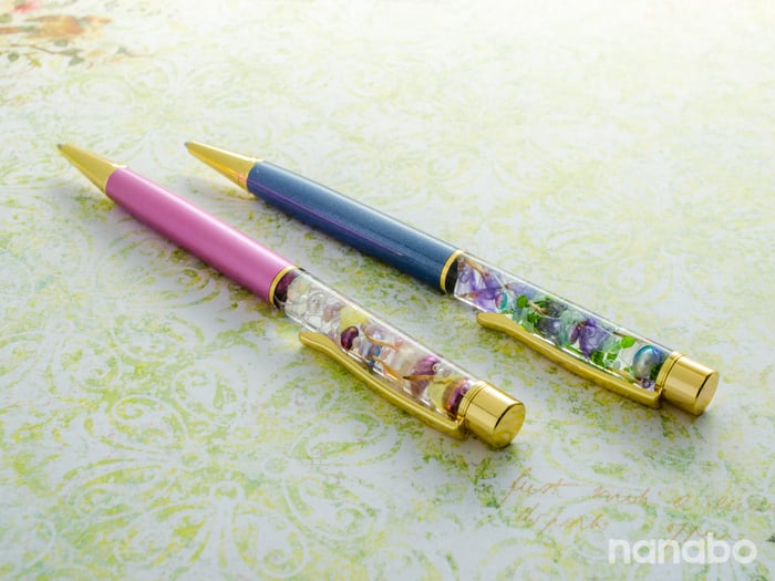 お好みのドライフラワーやプリザーブドフラワー、ビーズなどを選んで、オリジナルのハーバリウムペンを作ります。 - 製作時間: