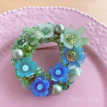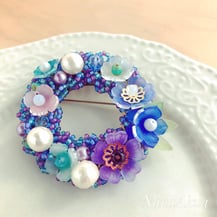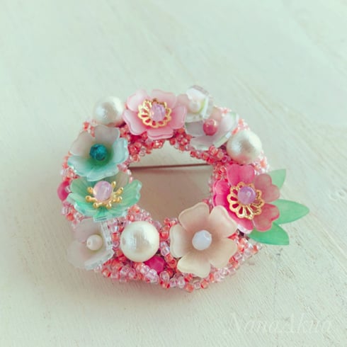 プラバンパーツとビーズを組み合わせたドーナツ型シャワーブローチ