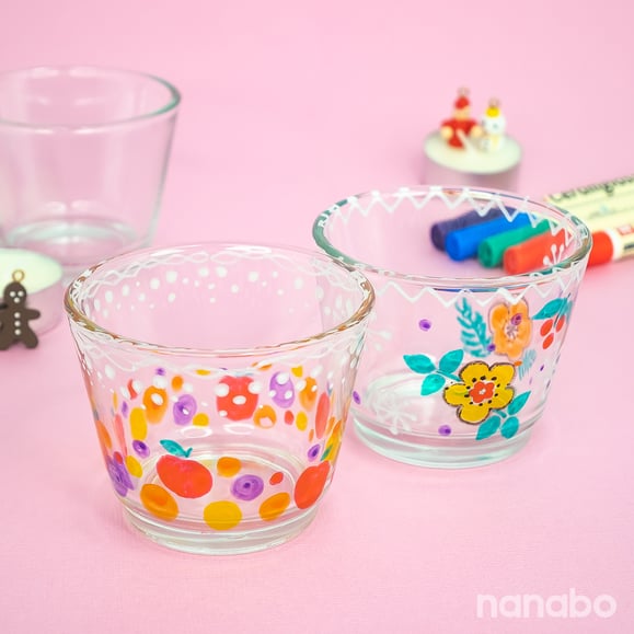ガラス製のキャンドルホルダーに、ペンで自分の好きな絵を描いていきます。難しい方は用意してあるサンプル図柄を見ながら描くこともできます。 - 対象: