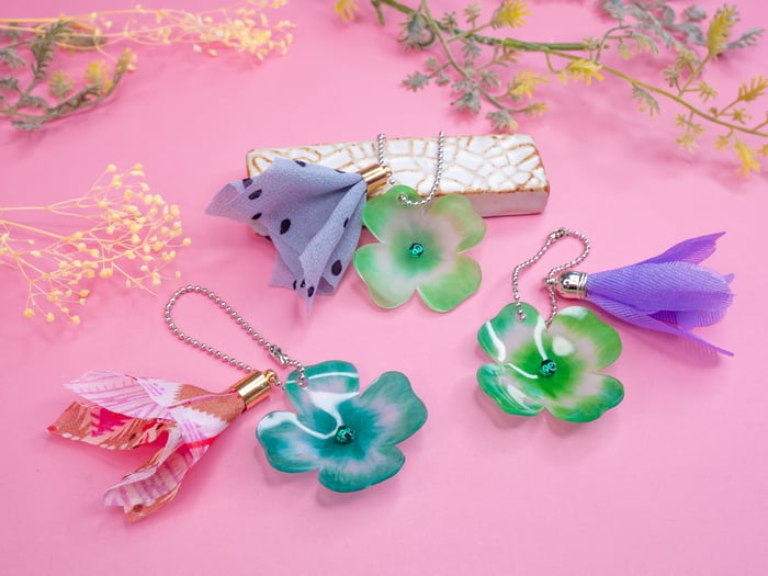 プラバンのクローバーには、油性ペンとキッチンペーパーを使って思い思いの色合いと濃さに色づけ。片面がグロス、もう片面がマットのプラバンで、“キラリ”でも“シック”でもお好みの仕上がりに! 中央に光るラインストーンを貼り、選んでおいたお好きなタッセルと合わせて、かわいらしいラッキーチャームのできあがり!