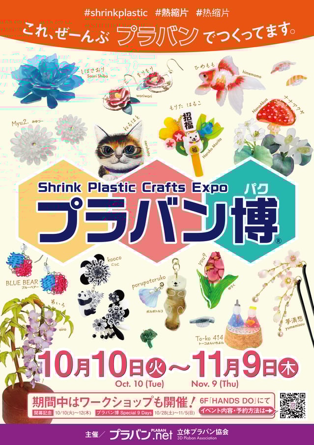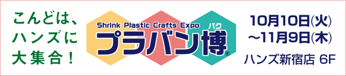 好評を博した4月の「日本ホビーショー」内での開催から約半年、こんどはハンズさんの店舗で、プラバンの驚き・楽しさ・ワクワクが大集合するイベントを、ぜひお楽しみください。