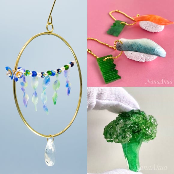 プラバンを使ったパーツを組み合わせて作る、インテリアアイテム「フープサンキャッチャー」のほか、人気の「寿司プラバン」や「ブロッコリー」など食べ物プラバンも作れます。