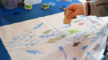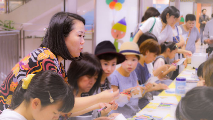 自分だけの消しゴムはんこを作ったり、数百種類はあるナナアクヤ作の消しゴムはんこを使って、好きな色のインクで、手ぬぐいや画用紙をキャンバスにお絵描きを楽しむワークショップ。