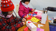 立体の花びらを重ねる作品から、1枚ものの花、リボン、恐竜、昆虫など、年齢・性別を問わず夢中になるプラバンクラフトのワークショップ。自分ではさみを使える子なら独りでも参加できます。