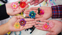 現在最も多くお問い合わせをいただくのが、著書も出している「立体のプラバンアクセサリー」ワークショップですが、もちろん、そのほかの手芸や、さまざまな要素を組み合わせたワークショップも、企画・実施いたします。